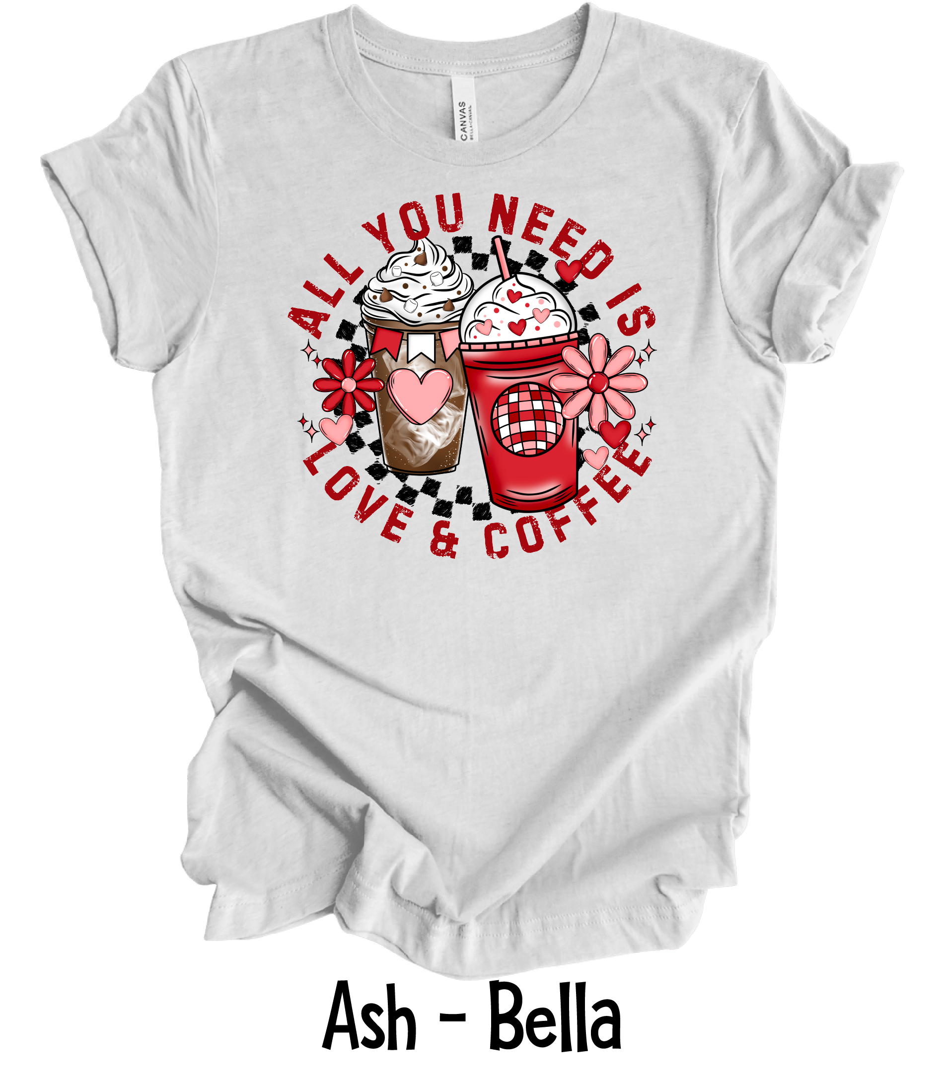 All you need is coffee is being offered in Bella Canvas or Gildan. Shirts colors vary between the two brands. Bella Canvas has a $2 upcharge.