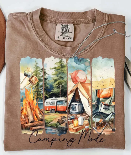 Camp Mode design can be done on Bella Canvas or Comfort Colors shirts. There is a $2 upcharge for Comfort Colors shirts.