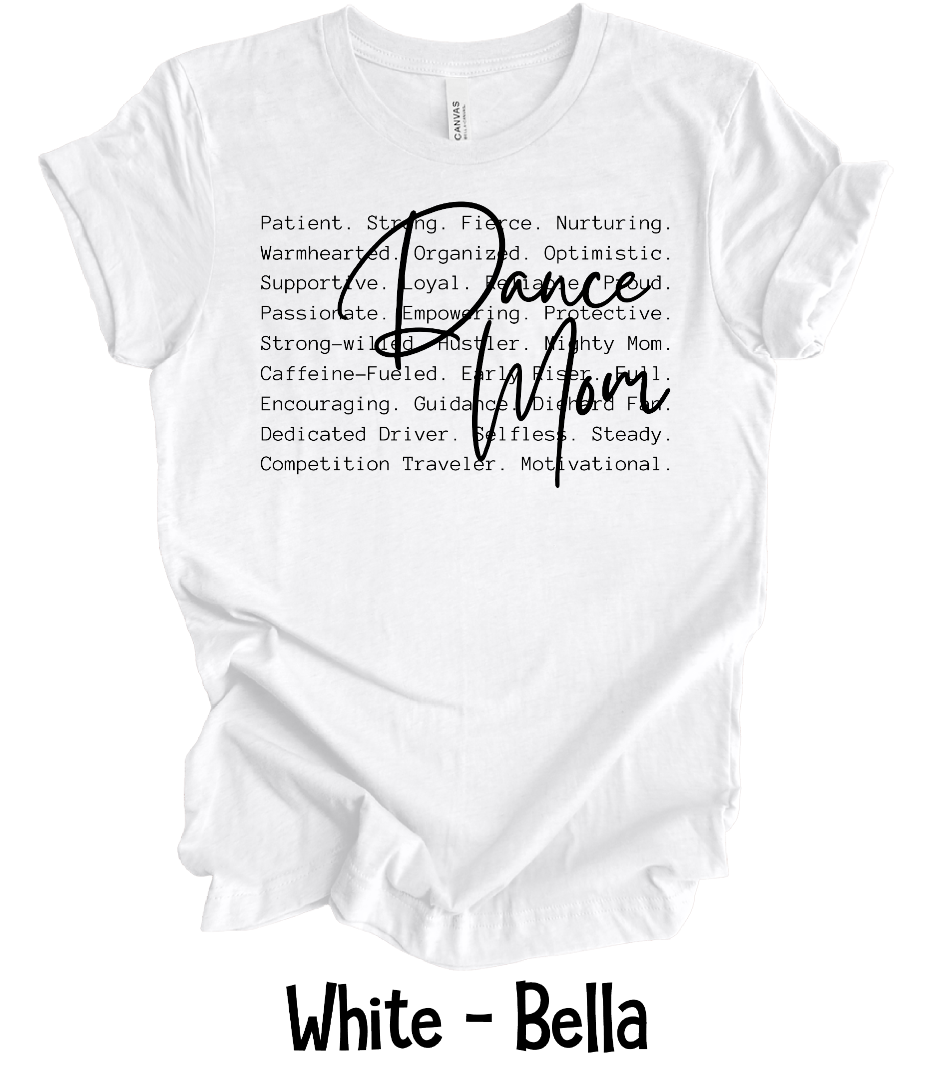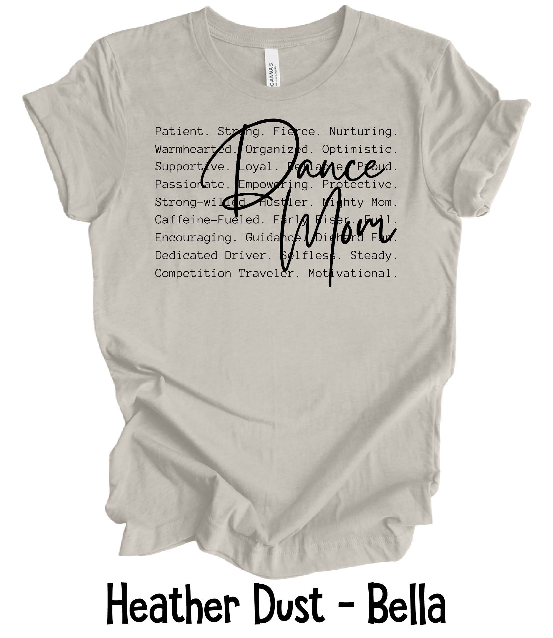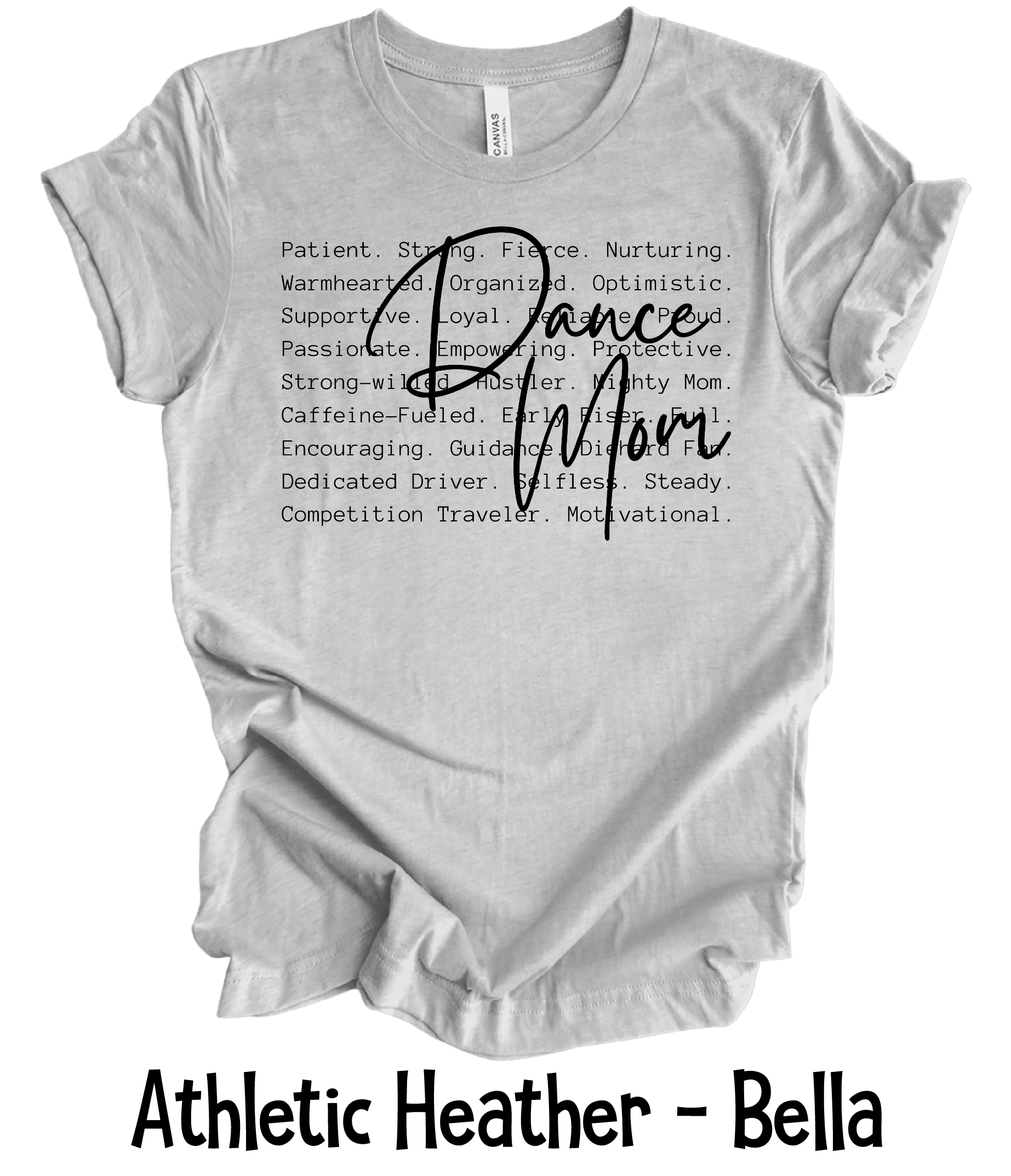 Dance Mom Defined is done on Bella Canvas unisex t-shirts.
