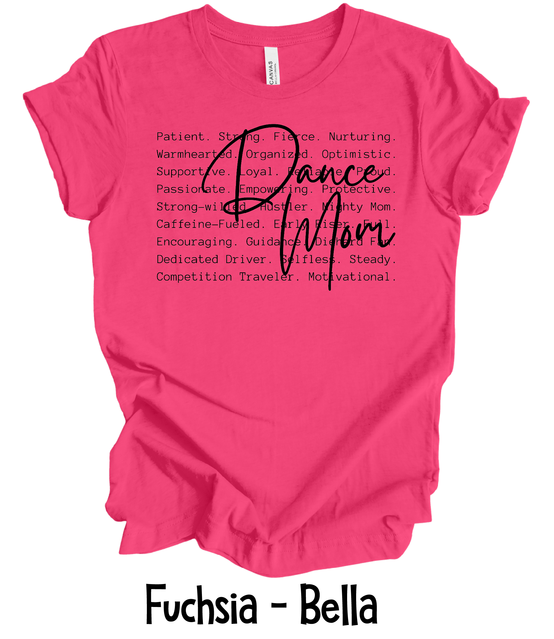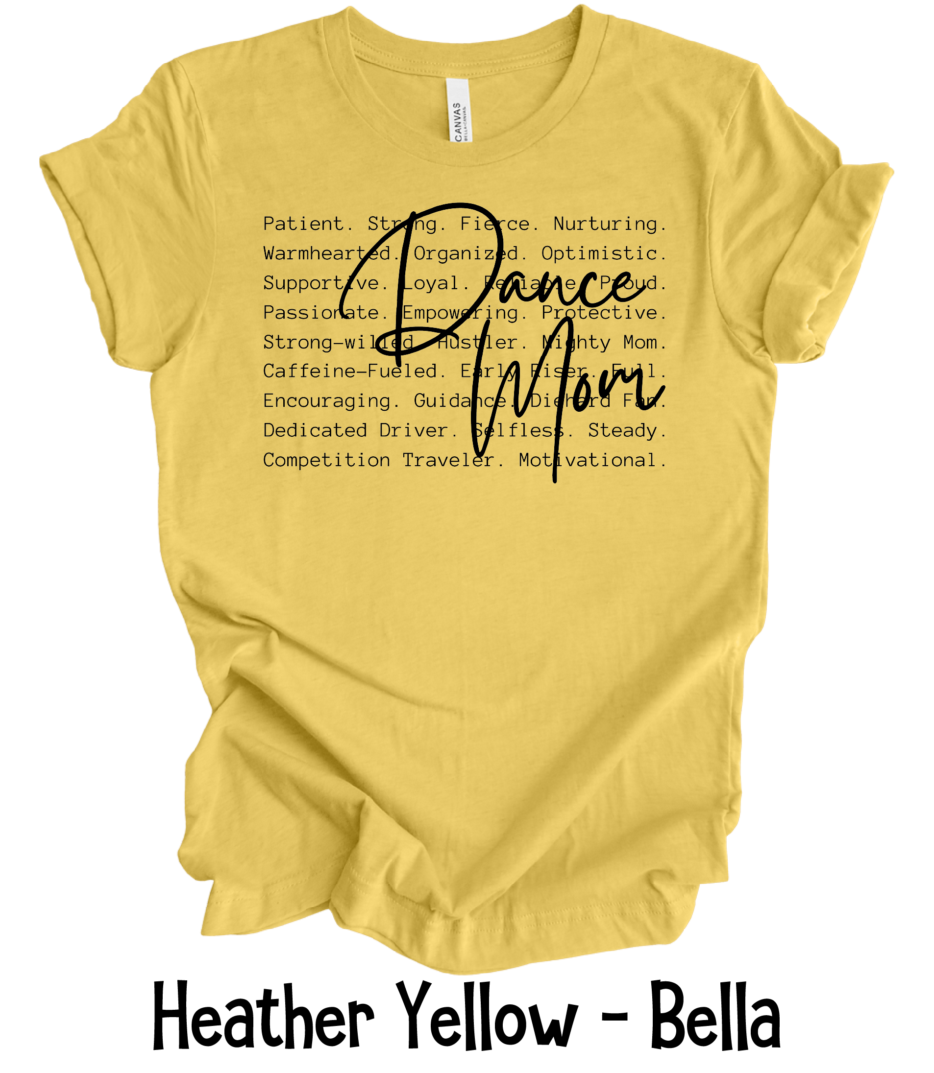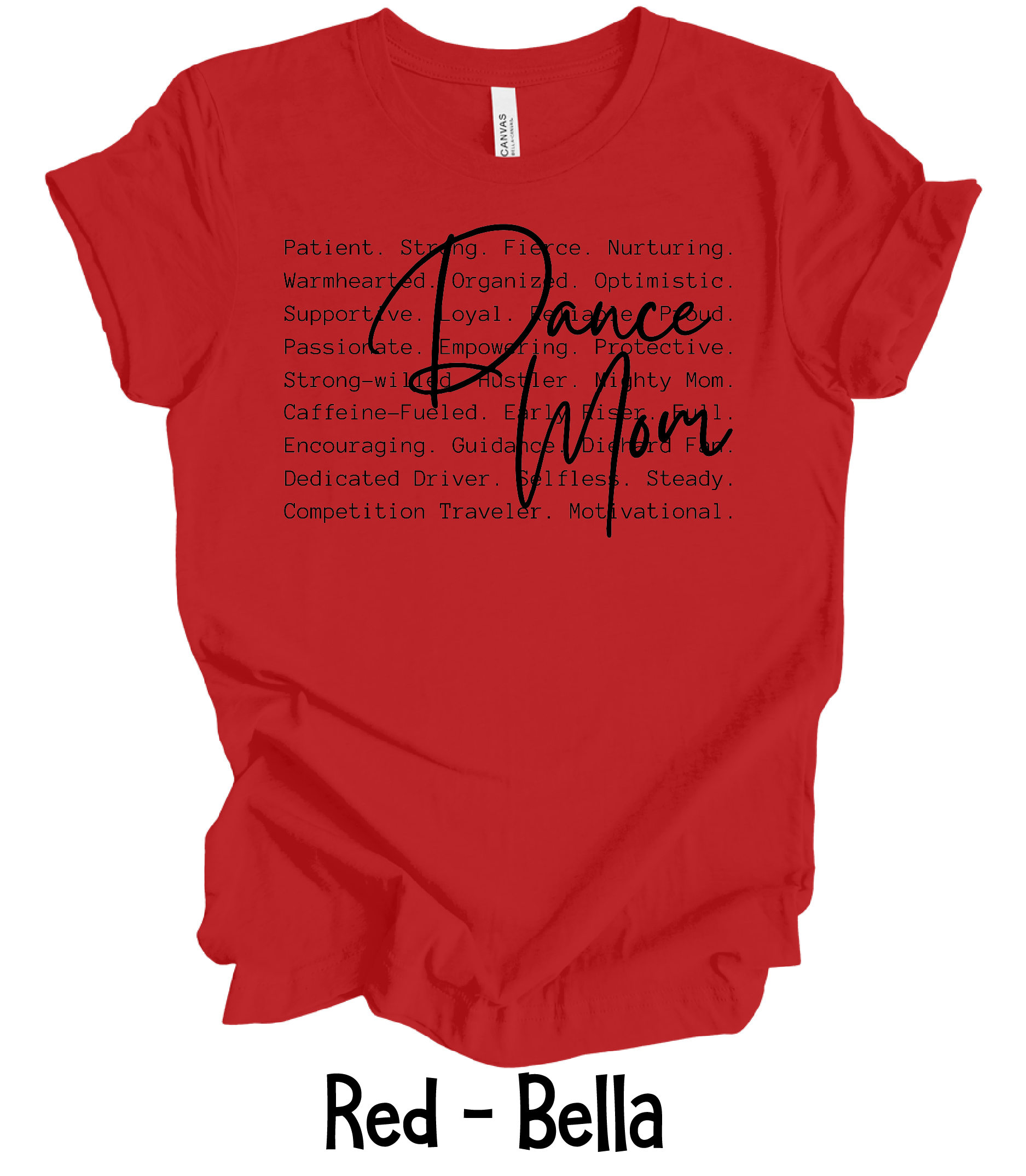 Dance Mom Defined is done on Bella Canvas unisex t-shirts.