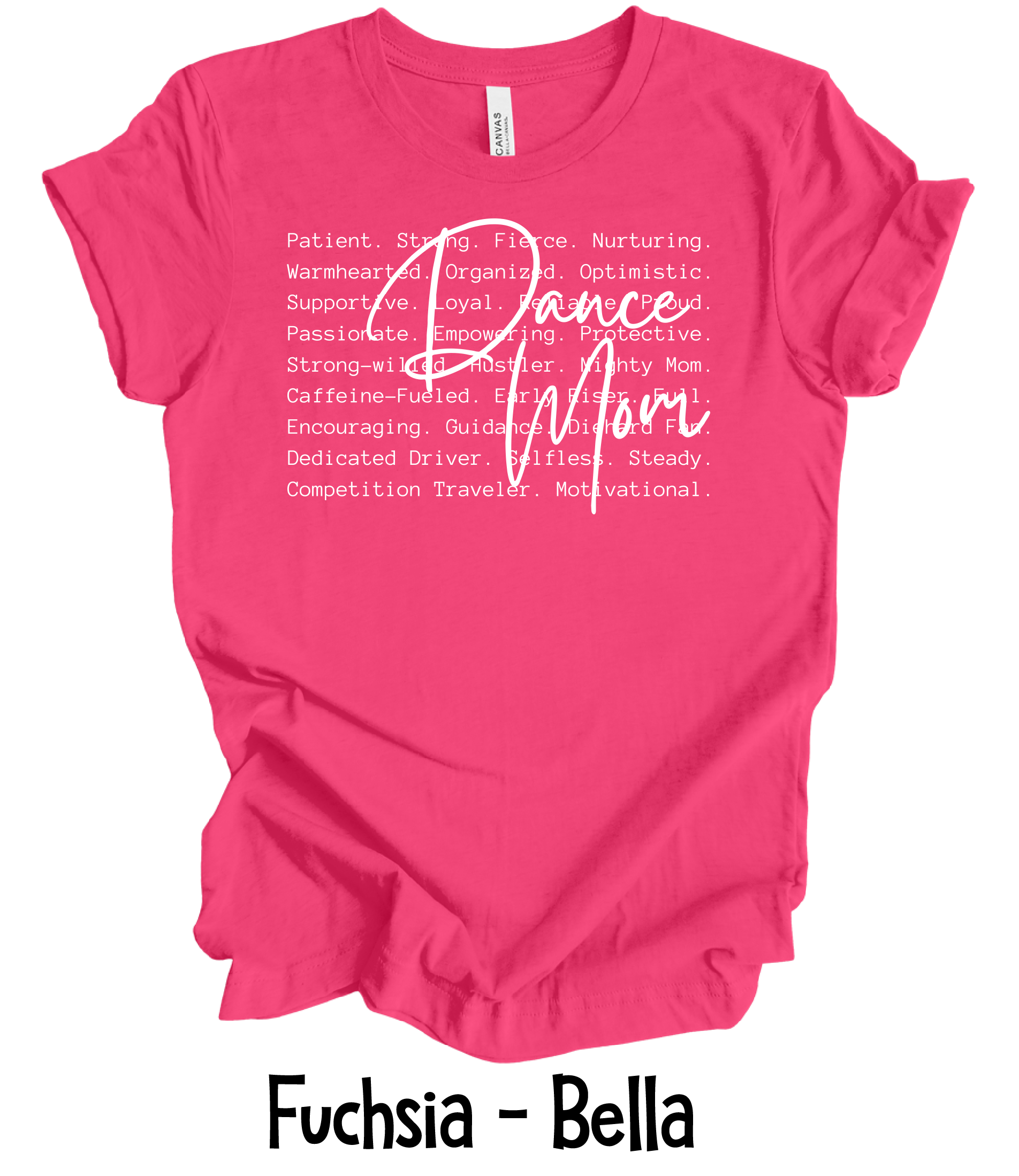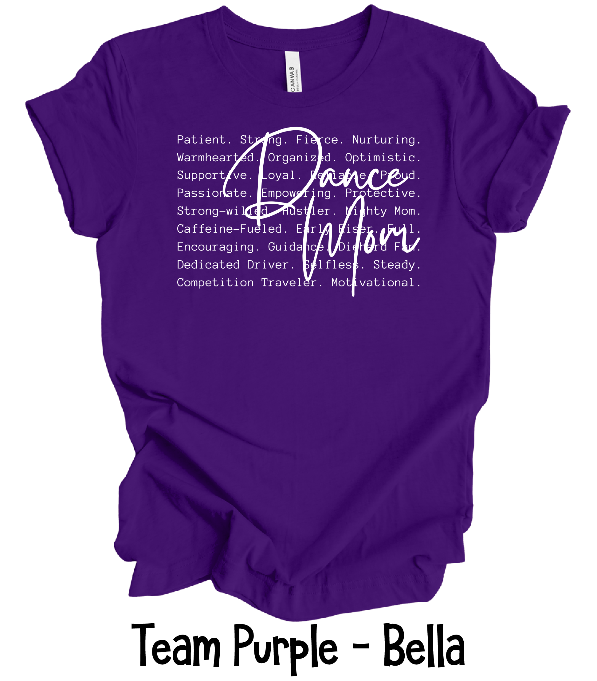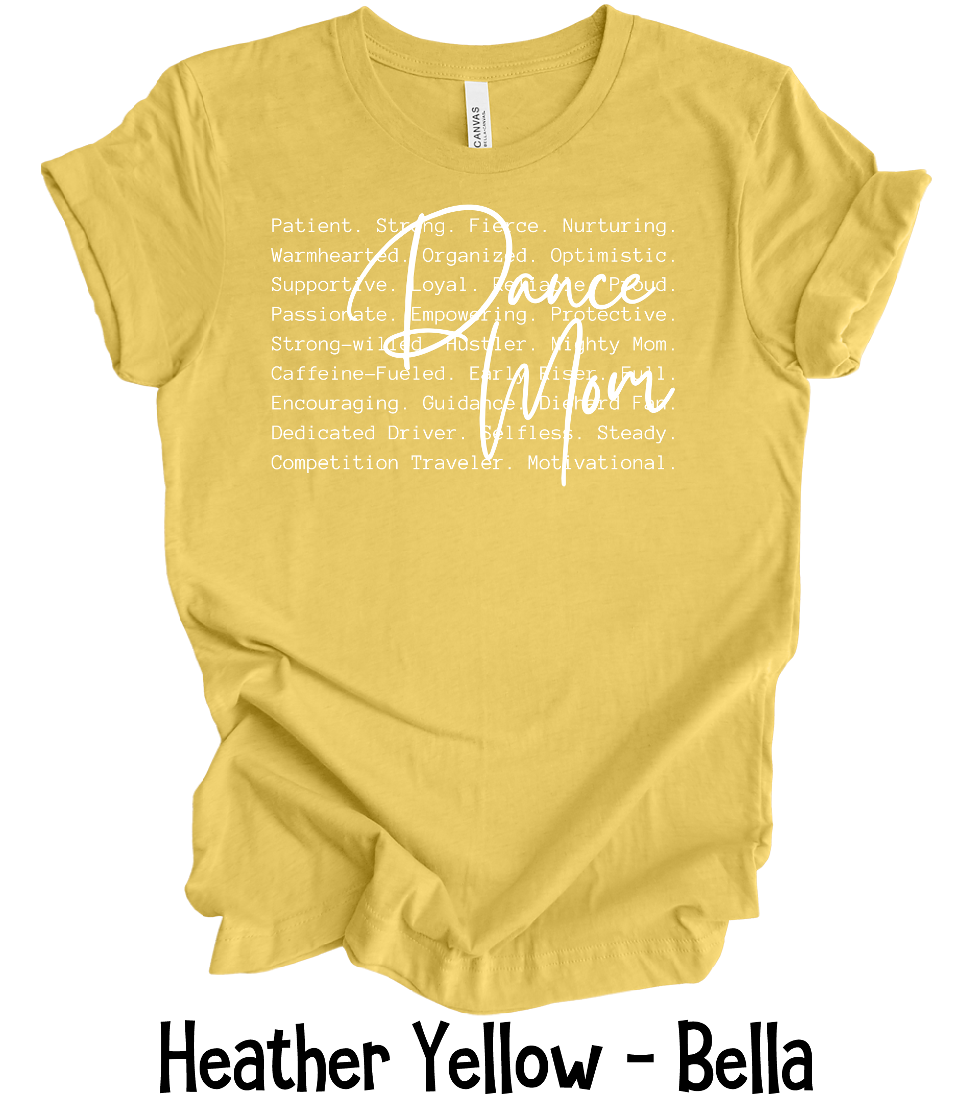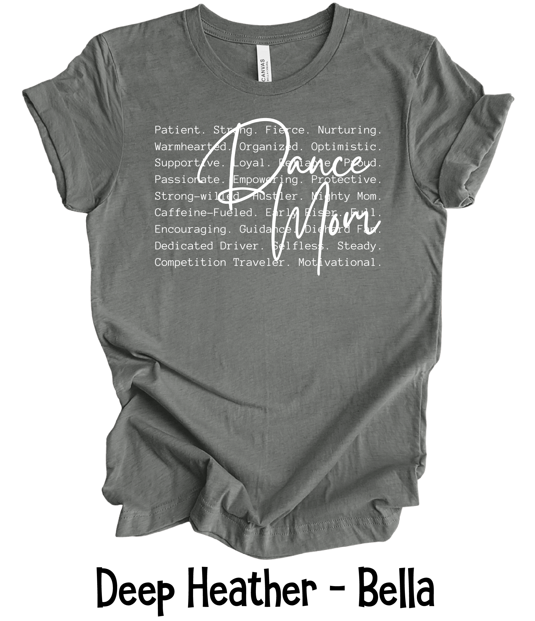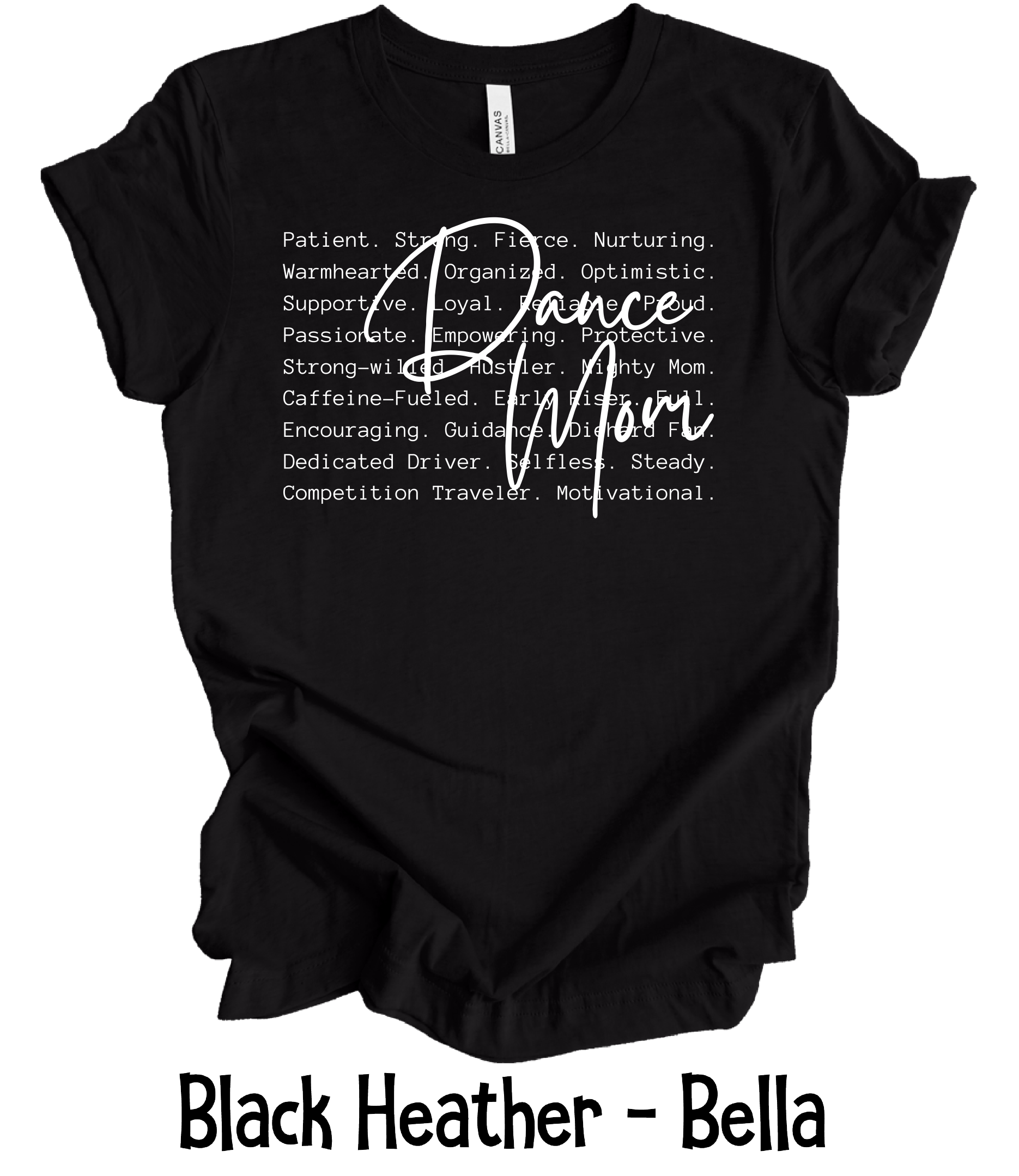 Dance Mom Defined is done on a Bella Canvas unisex t-shirt.