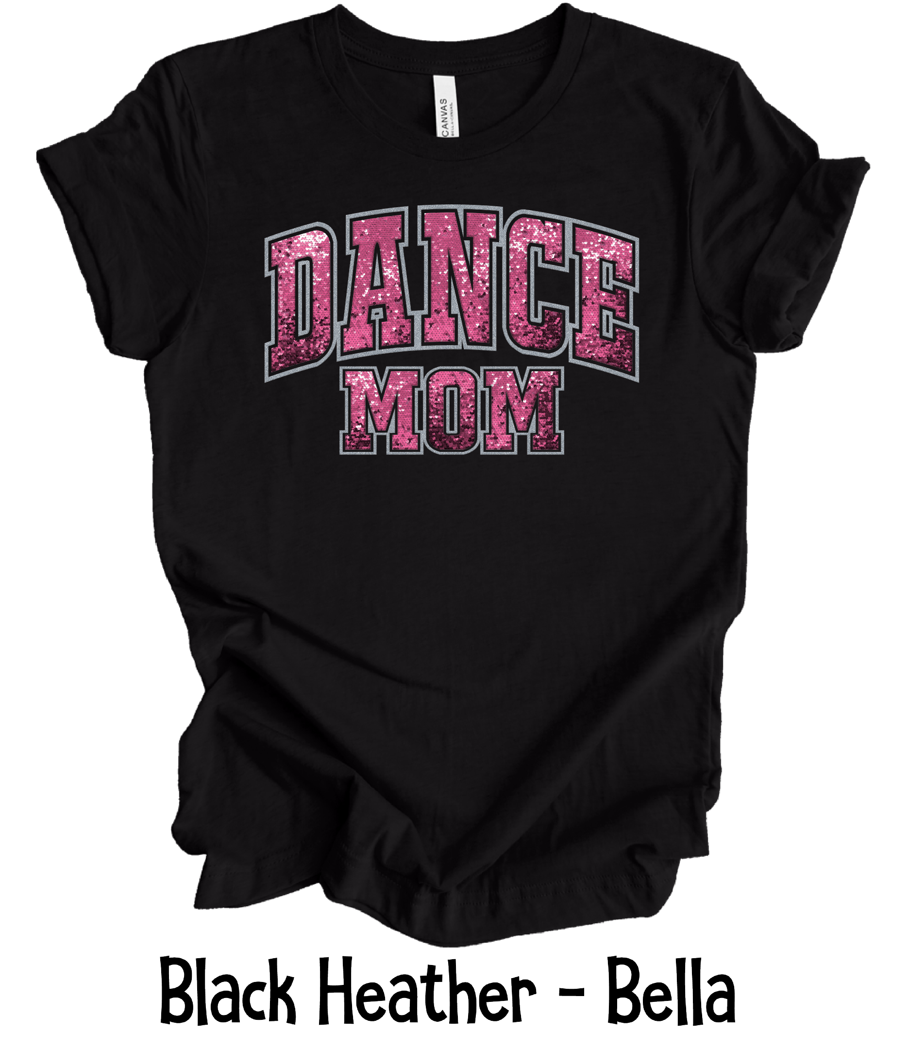 Dance Mom Faux Pink Sequin is offered in several different shirt colors and sleeve lengths. All will be done on Bella Canvas shirts.