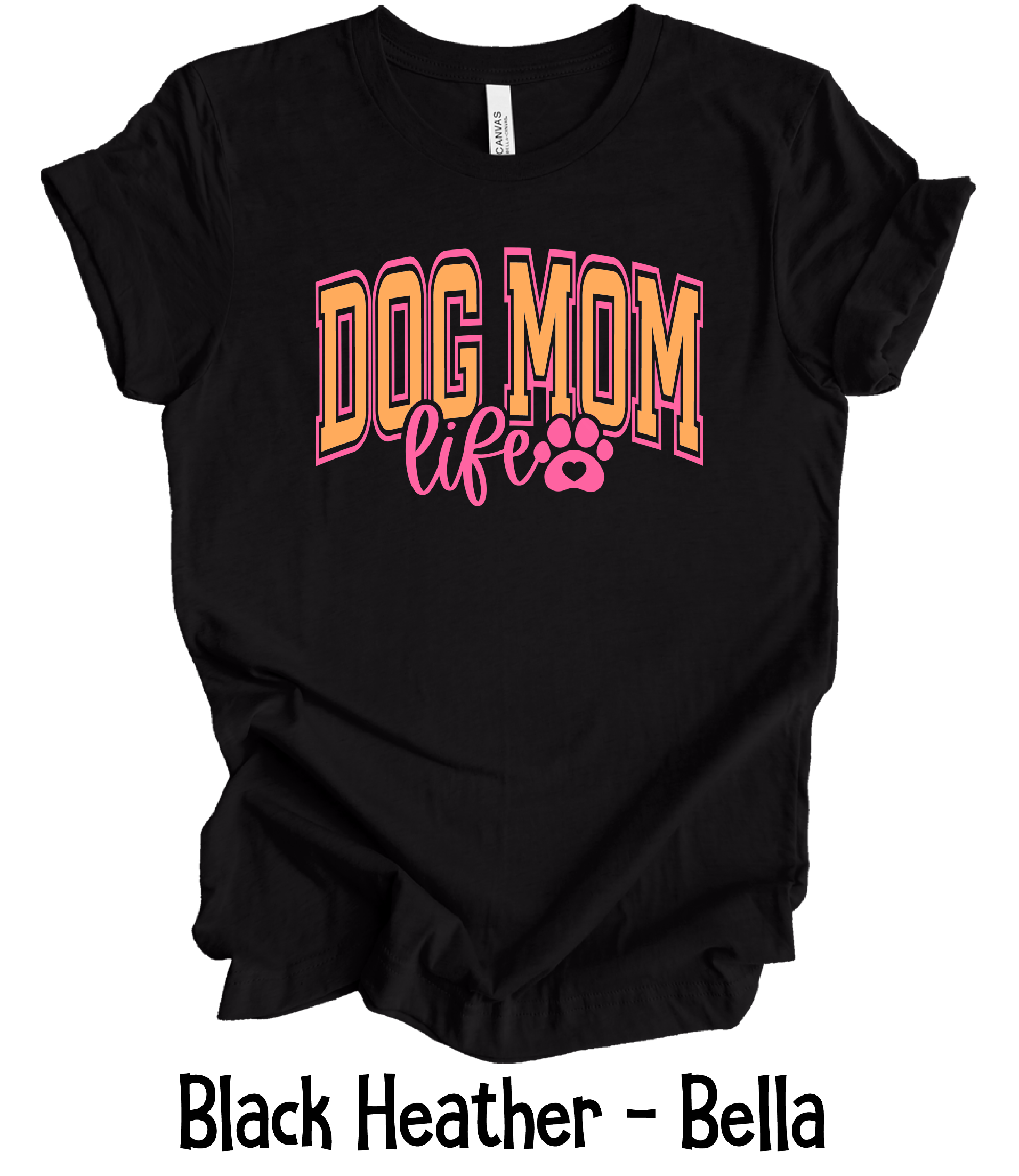 Dog Mom design is done on Bella Canvas. These colors are available in t-shirt, long sleeve and crewneck in most sizes.