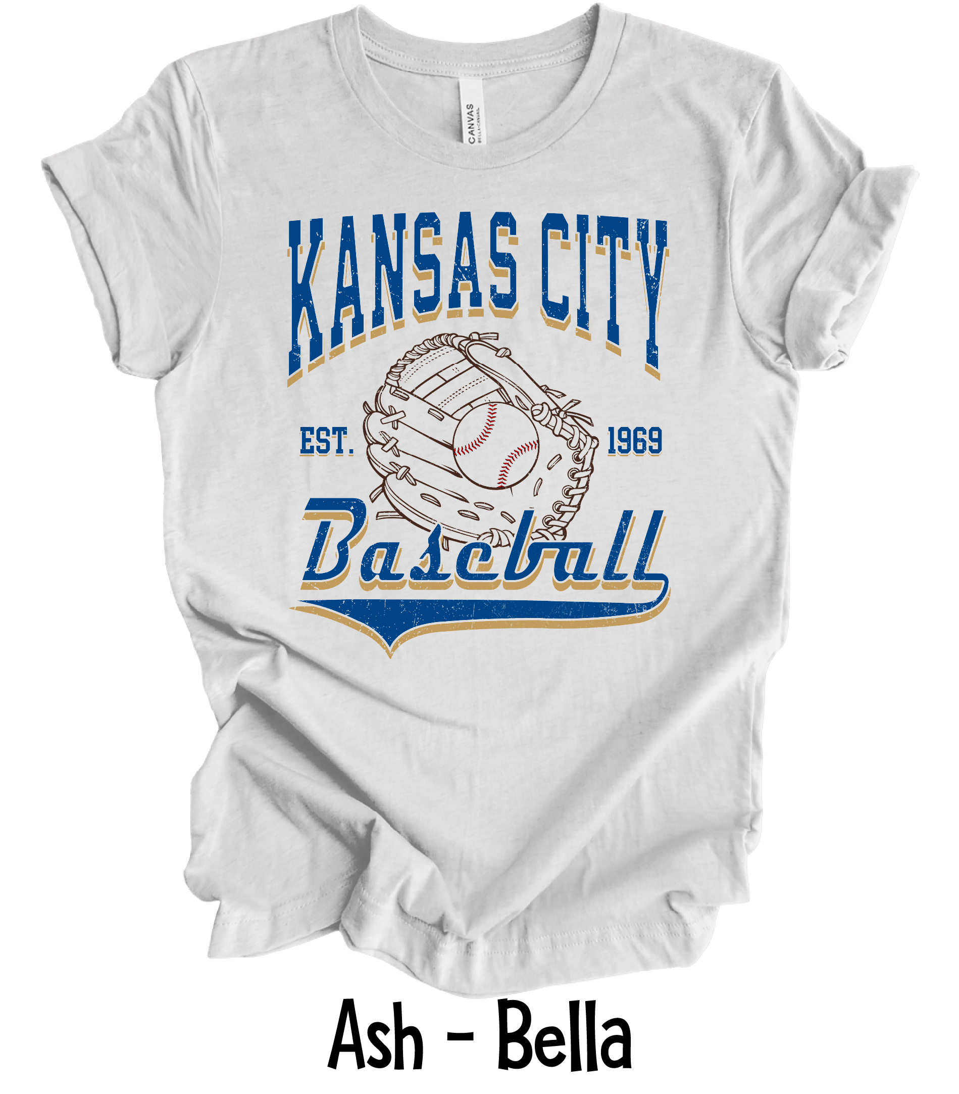 KC Baseball Vintage design is done on Bella Canvas shirts. We can do t-shirts, long sleeve or crewnecks for most of the colors. Youth sizes are only available in t-shirts at this time.