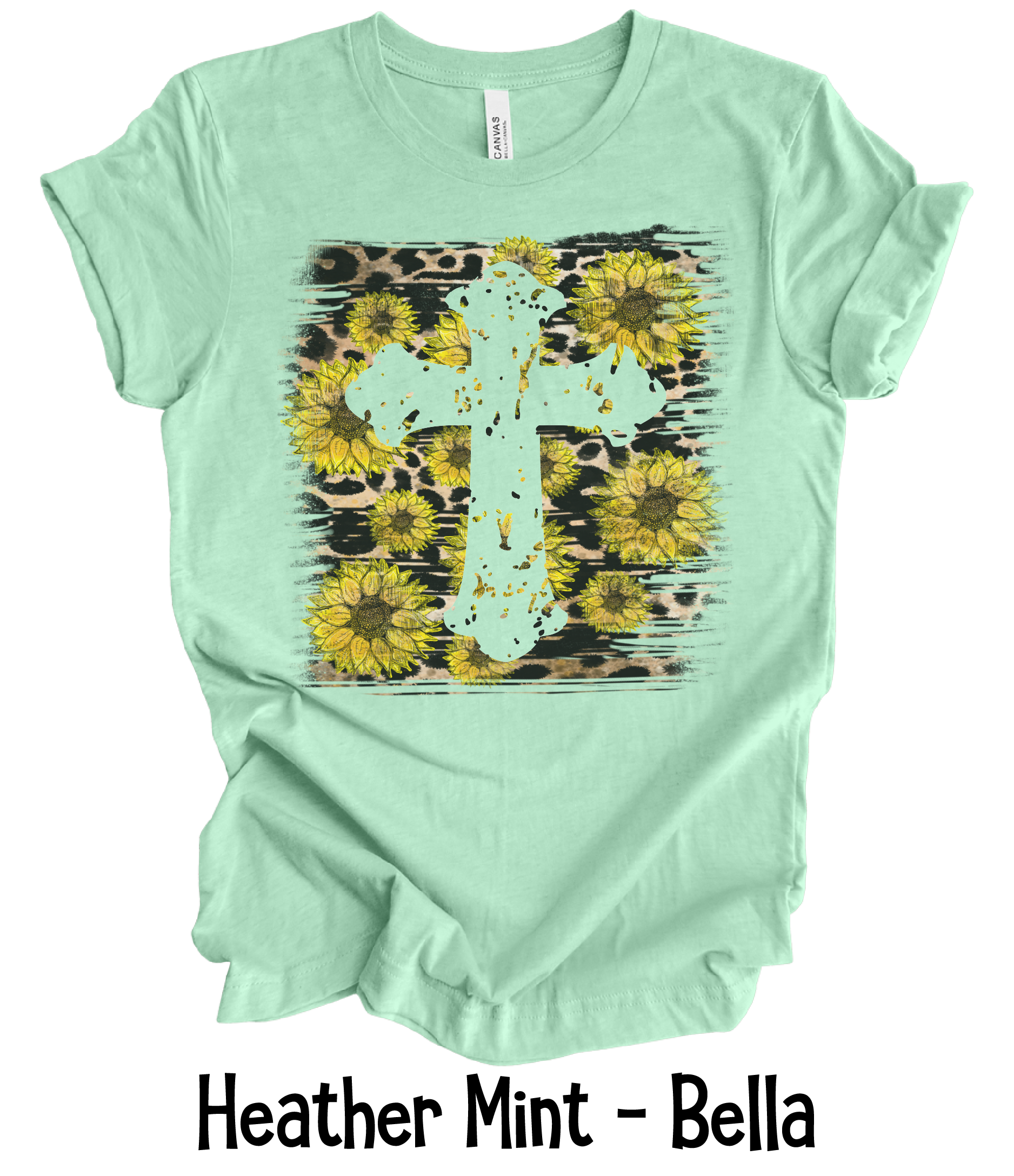 Sunflower Cross design can be done on Jerzees or Bella Canvas ($2 upcharge) t-shirts. We have 13 different colors to choose from!